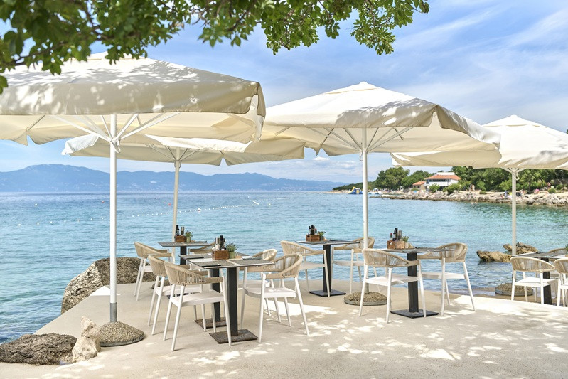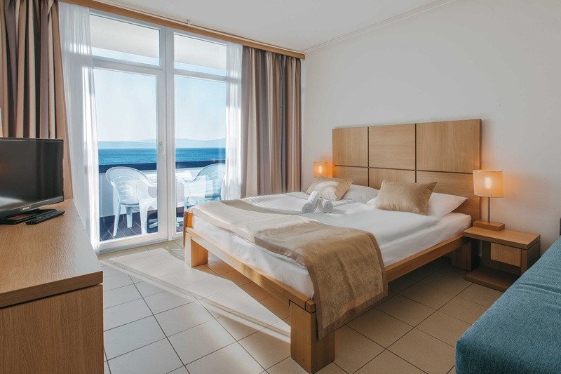 Pláž: oblázková, kamenitá a betonová vzdálená cca 15 m, vhodná také pro děti, možnost zapůjčení lehátek a slunečníků na pláži (za poplatek).