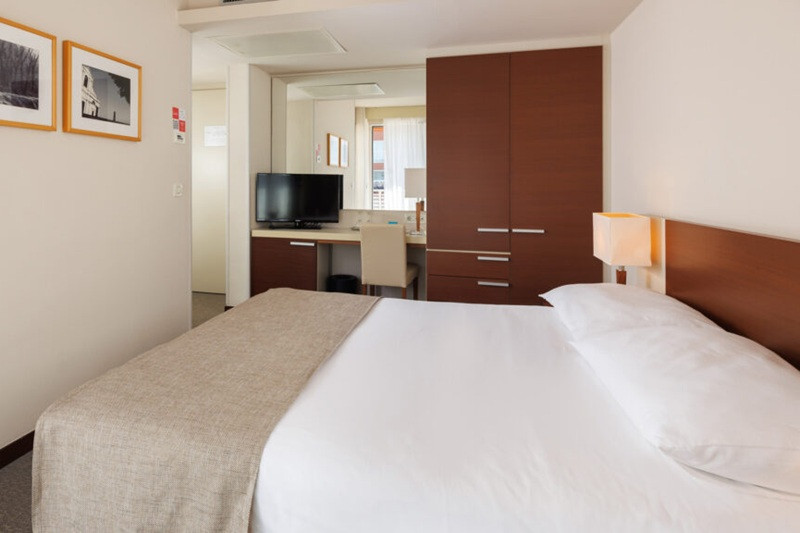 Poloha: na poloostrově Zelená laguna, cca 150 m od pláže, cca 5 km od města Poreč, v sezóně zde jezdí turistický vláček do centra Poreče (v denních hodinách každých 30 minut a za poplatek), lodní spojení (v denních hodinách každých 60 minut a za poplatek).