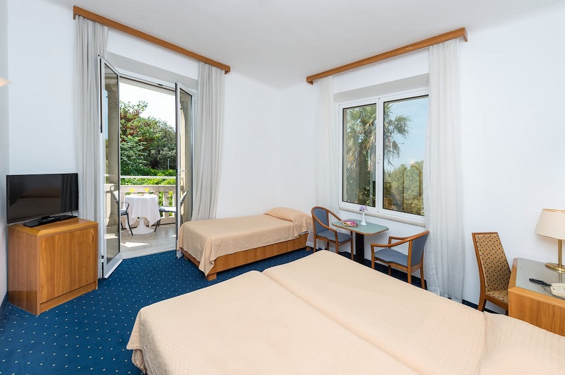 Poloha: v klidné části Dubrovníku – Lapad, cca 3,5 km od historického centra. V blízkosti promenáda s restauracemi, bary a obchody. Pravidelné spojení městským autobusem (zastávka přímo u hotelu). Hotel je obklopen zelení a středomořskou vegetací, vhodné pro relaxaci a procházky.