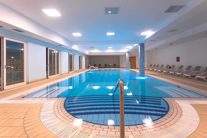 Bazén: venkovní bazén s mořskou vodou, dětský bazén, lehátka a slunečníky u bazénu zdarma (v omezeném množství), vnitřní bazén s mořskou vodou.
