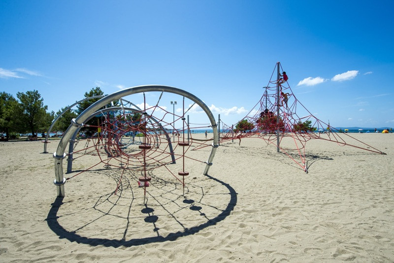 Sport a zábava: za poplatek tenisové kurty, tenisová škola, plážový volejbal, cyklostezky (půjčovna kol), venkovní fitness, bowling, minigolf, basketbalové hřiště, fotbal, házená, adventure golf, šlapadla, skútry, motorové čluny, vodní lyžování (škola vodního lyžování a potápění), kotviště pro lodě, motorové čluny a malé jachty.
