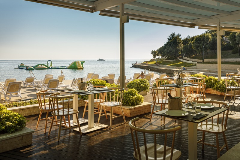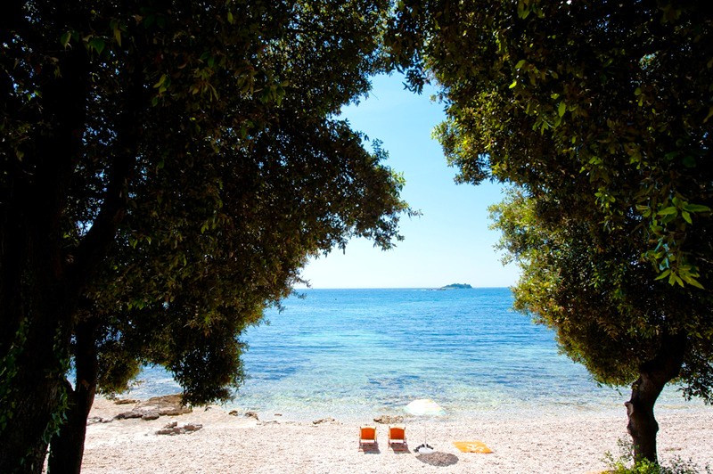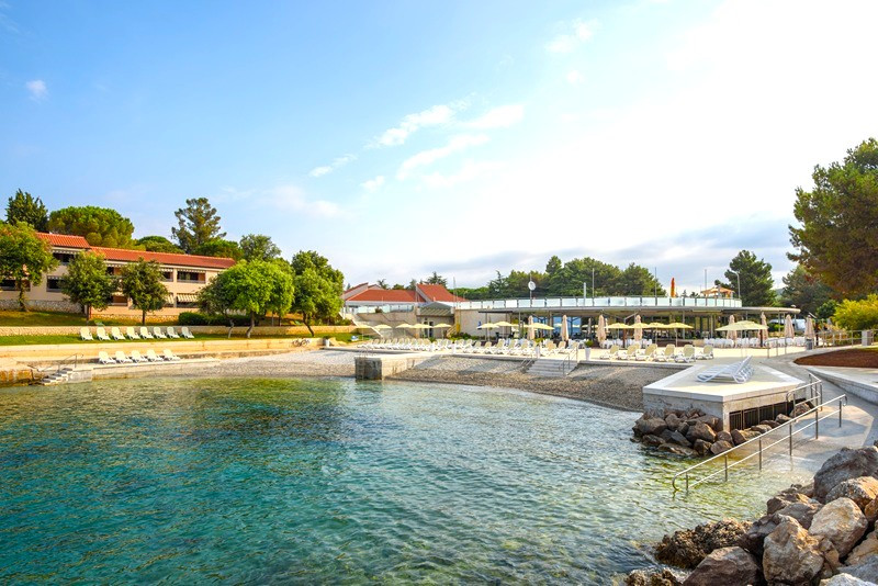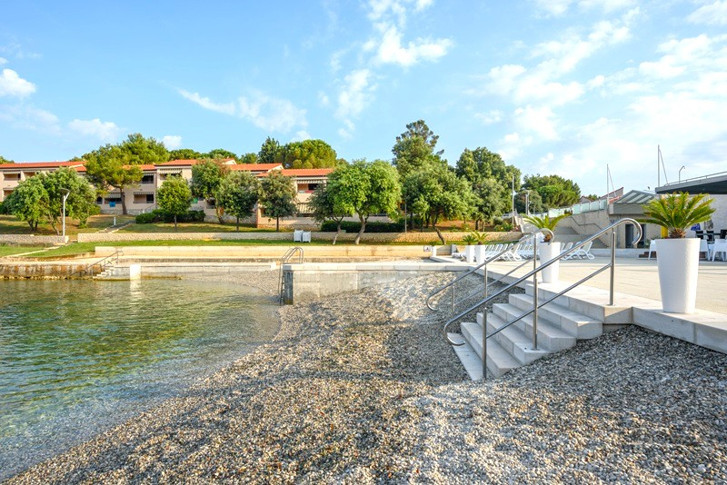 Pláž: oblázková, kamenitá, skalnatá (cca 50-300 m); možnost zapůjčení slunečníku a lehátek na pláži (za poplatek).