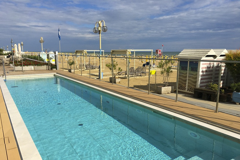 Poloha: hotel stojí přímo v centru Lido di Jesolo, přímo naproti náměstí Piazza Trieste – klidná privilegovaná zóna s výhledem na moře.