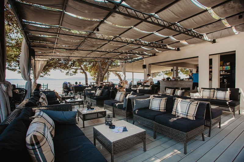 Pláž: cca 100 m, oblázková, kamenitá, vhodná i pro děti, betonová plata, možnost zapůjčení lehátek a slunečníků na pláži (za poplatek).